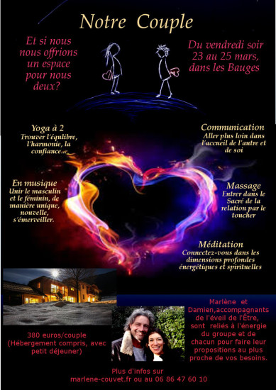 Notre Alliance, notre couple, qui est le résultat et le creuset de toute notre quête intérieur et vers l'amour, nous amène à proposer ce stage ensemble naturellement.